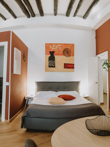 “Sapurita” in siciliano non allude soltanto a qualcosa di saporito, ma significa anche dolce, grazioso in senso figurato. Ed è proprio quello che ti verrà in mente quando entrerai in questa Camera Deluxe con cucina attrezzata. Un siciliano esclamerebbe “Chi sapurita!”. Questa è la soluzione perfetta per chi vuole pernottare più giorni ma ama vivere l’atmosfera di casa. L’ampia cucina attrezzata, infatti, vi permetterà anche di cucinare e degustare le vostre pietanze nel caso in cui non voleste cenare fuori. Inoltre nel balcone è disponibile un tavolino e sgabelli pieghevoli per un happy hour da vero local! L'atmosfera calda e intima che si respira in camera vi farà sentire come a casa vostra. Date uno sguardo all’alto e ammirate il soffitto ligneo originario dell’Ottocento, che è stato recuperato con un attento lavoro di restauro. L’ampio letto matrimoniale è circondato da colori caldi e antiche fotografie di Palermo e il tavolo posto al centro della camera è ideale per i vostri pasti veloci ma anche per chi preferisce lavorare comodamente in smartworking. I dettagli siciliani della camera impreziosiscono il contesto.